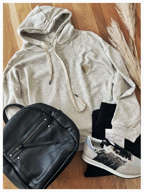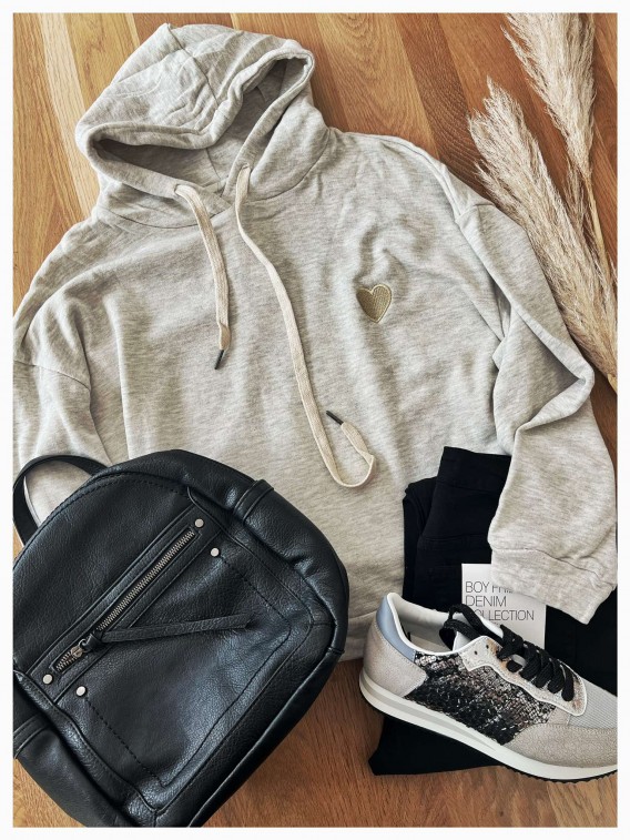 Sweat à capuche gris coeur